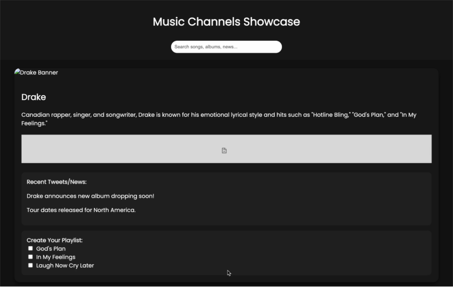 | Banner Images for Artists | Present for all five artists | Present, but only for Drake |